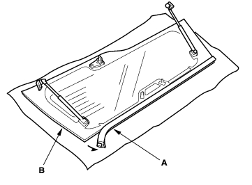 - Remove the molding (A) from the upper edge of the hatch glass (B). If necessary, cut the molding with a utility knife.