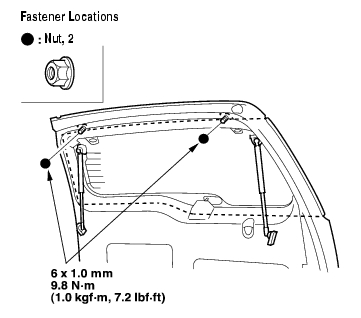 - With an assistant holding the hatch glass, remove the nuts from both sides. Unlock the hatch glass latch.