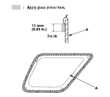 - Apply primer (YOKOHAMA RUBBER MS-90, or equivalent) to the inside face of the hatch glass (A):