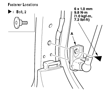 - If the new quarter glass is to be installed, glue the fastener (A) to the body. Be sure the fastener lines up with the body contour.