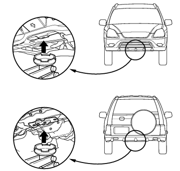 - Block the rear wheels when raising the front of the vehicle; block the front wheels when raising the rear of the vehicle.