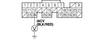 - Measure voltage between IAC valve 3P connector terminal No. 2 and body ground.
