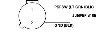 - At the harness side, connect PSP switch 2P connector terminals No. 1 and No. 2 with a jumper wire.