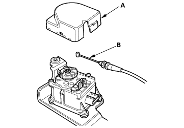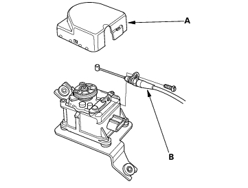 - Remove the actuator cover (A), then remove the actuator cable (B) from the actuator.