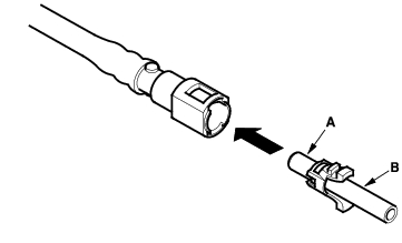 - When connecting the wire harness, make sure the connection is secure and the terminal (B) is firmly locked into place.