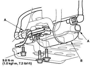 - Remove the propeller shaft (see page 16-33) . Remove the rear differential mounting bolt (B), then support it with jackstands.