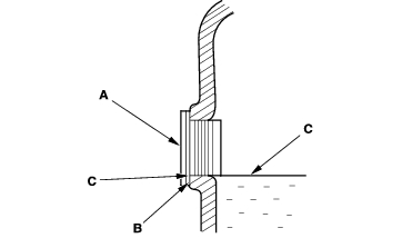 - Remove the oil filler plug (A) and sealing washer (B), then check the condition of the fluid, and make sure the fluid is at the proper level (C).