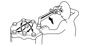 Parts must be assembled with the proper torque according to the maintenance standards established. When tightening a series of bolts or nuts, begin with the center or large diameter bolts and tighten them in crisscross pattern in two or more steps.