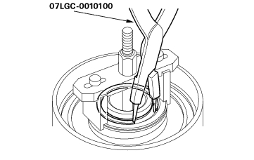 - Reinstall the bearing in the transmission housing (see page 14-203) .
