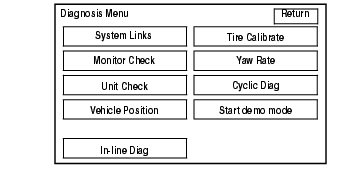 System Links Tire Calibrate Monitor Check Yaw Rate Unit Check Cyclic Diag Vehicle Position Start demo mode In-line Diag Cyclic Diag