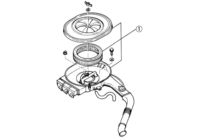 | Fig. 2: View of the 1,998cc air cleaner housing — the filter element (1) should be replaced every 24,000 miles or 2 years |