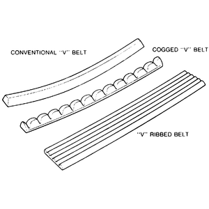 | Fig. 1: There are typically 3 types of accessory drive belts found on vehicles today |