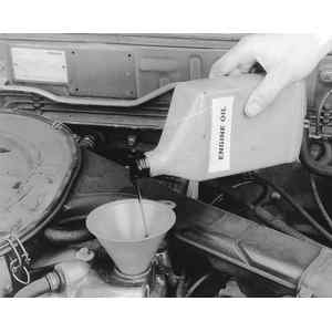 | Fig. 6: . . . and, using a funnel, pour oil of the