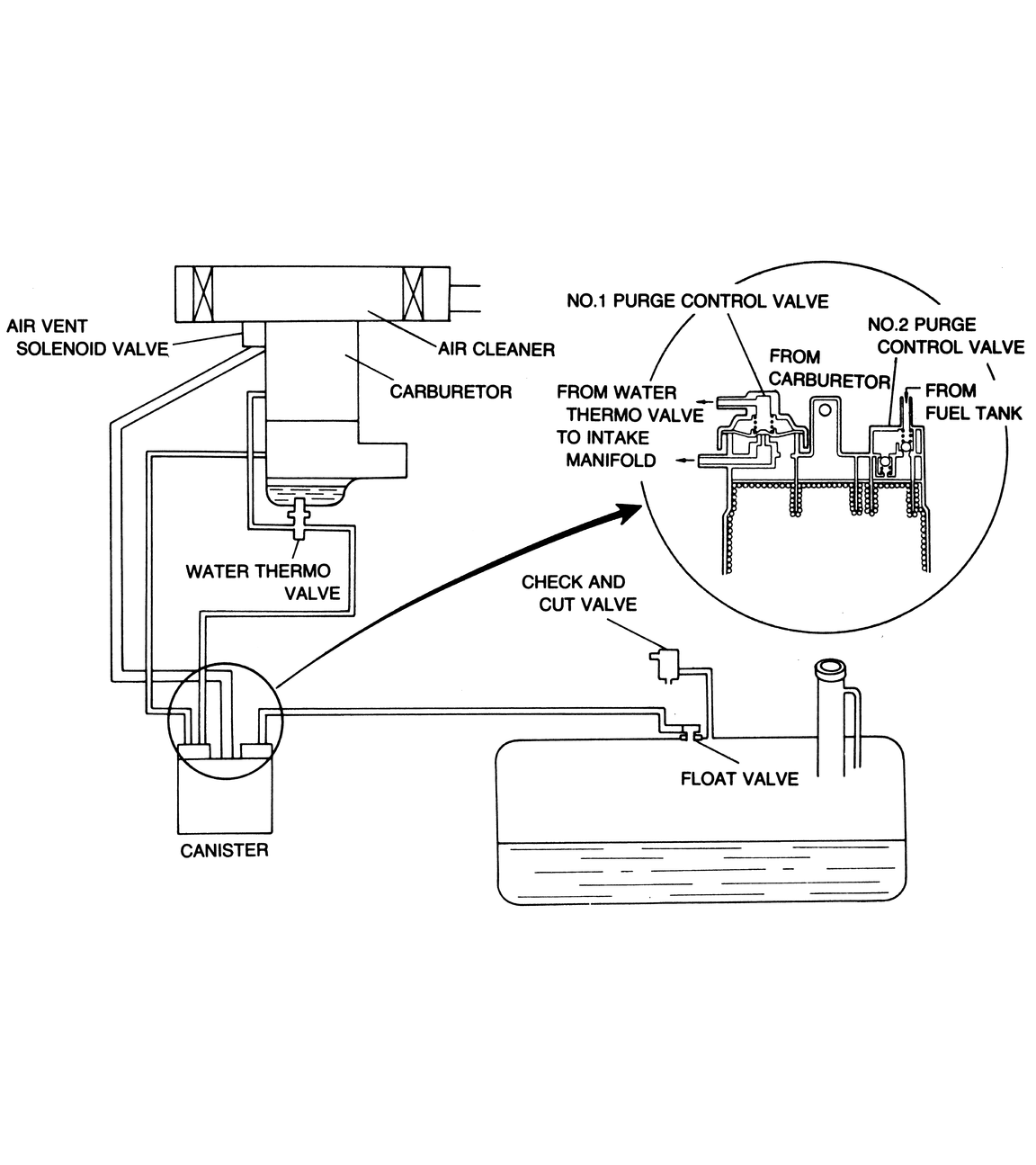 Fig. 2: Evaporative emission system used on 1986 trucks