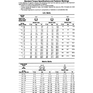| Fig. 5: Standard and metric bolt torque specifications based on bolt strengths — WARNING: use only as a guide |