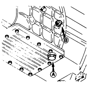 | Fig. 7: Oil drain plug (A) and fill plug (B) locations