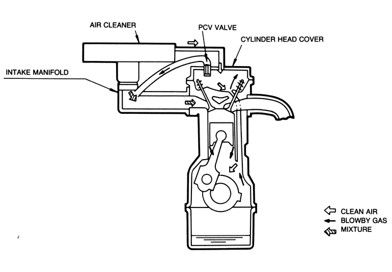 | Fig. 1: Schematic of the PCV system used on 1986 carbureted trucks |