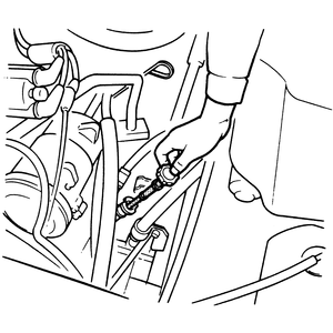 | Fig. 1: Checking the power steering fluid level