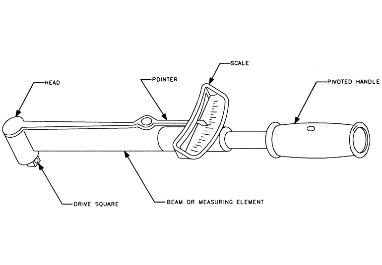The beam type torque wrench is one of the most popular types. It consists of a pointer attached to the head that runs the length of the flexible beam (shaft) to a scale located near the handle. As the wrench is pulled, the beam bends and the pointer indicates the torque using the scale.