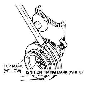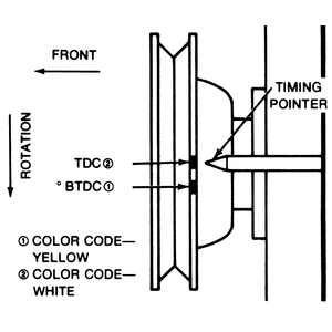 When the engine is running, the timing light is aimed at the marks on the flywheel pulley and the pointer.