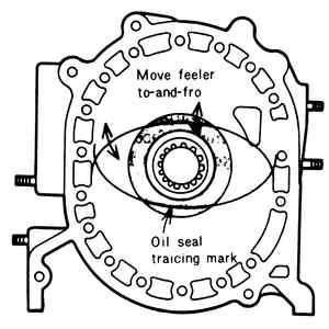 gauge. If the gap exceeds 0.05mm (0.00197 in.), replace the rotor housing.
