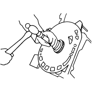 - Fit the jig (Mazda part number 49 2113 030) over the rotor. Tighten its