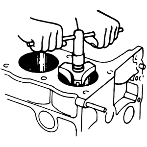 | Fig. 4: Carefully tap the piston out of the bore using