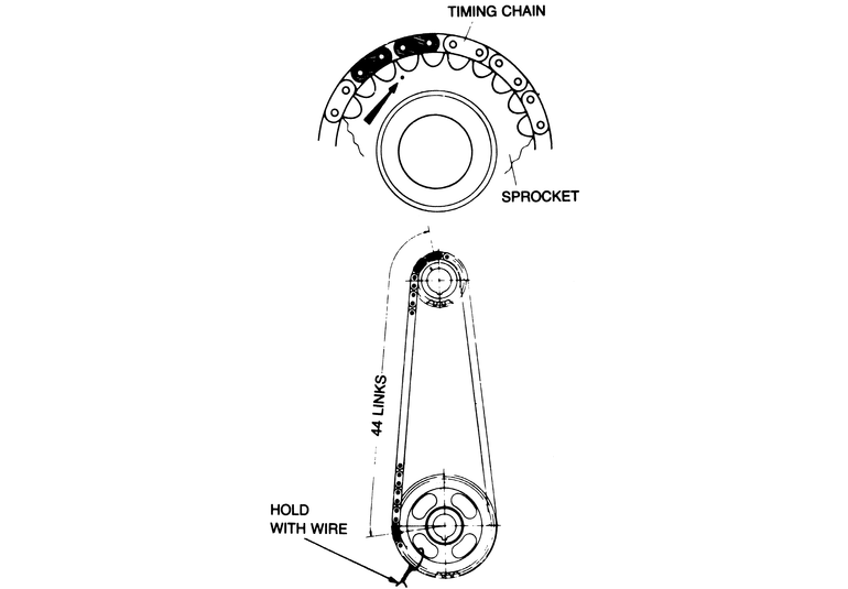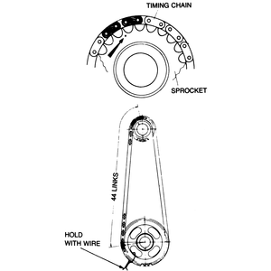 | Fig. 4: Timing chain installation on the 1,970cc engine (note that the illustration shows a view of the engine with the cylinder head down) |
