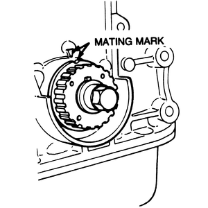 | Fig. 15: Closeup view of aligning the crankshaft sprocket