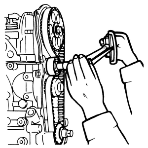 | Fig. 11: Camshaft sprocket removal