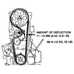 | Fig. 21: Measuring timing belt deflection |