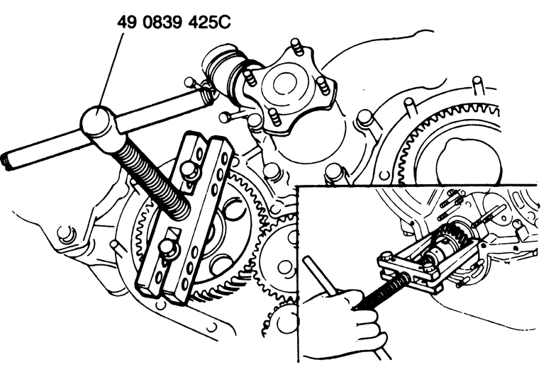 | Fig. 4: Removing the injection pump gear using a puller