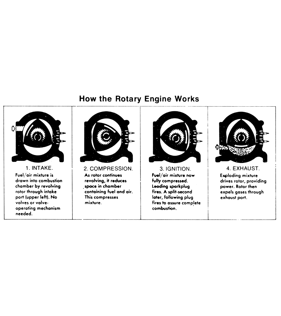 As the rotor travels its path in the chamber, it performs the same four functions as the piston in a regular four cycle engine: