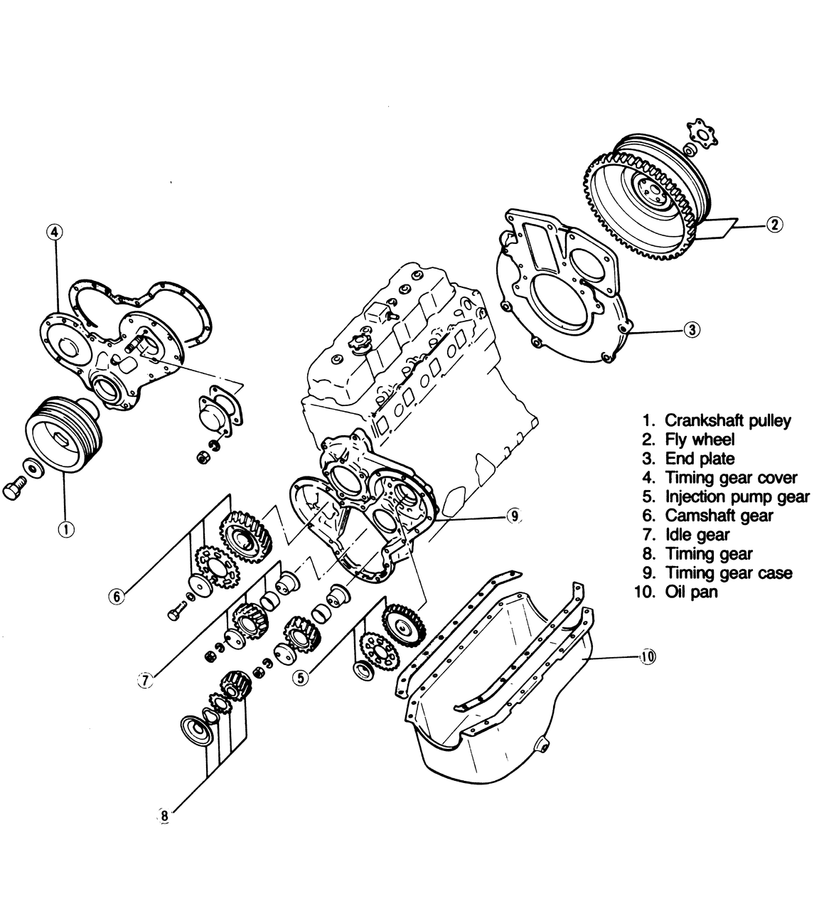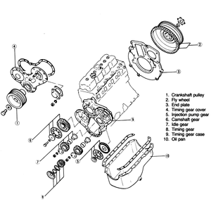 | Fig. 2: Exploded view of the timing components on the diesel engine |