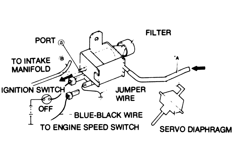 solenoid valve. Connect the vacuum hose from the servo diaphragm to the vacuum
