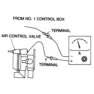 - Connect an ammeter to the air control valve solenoid leads and to ground.
