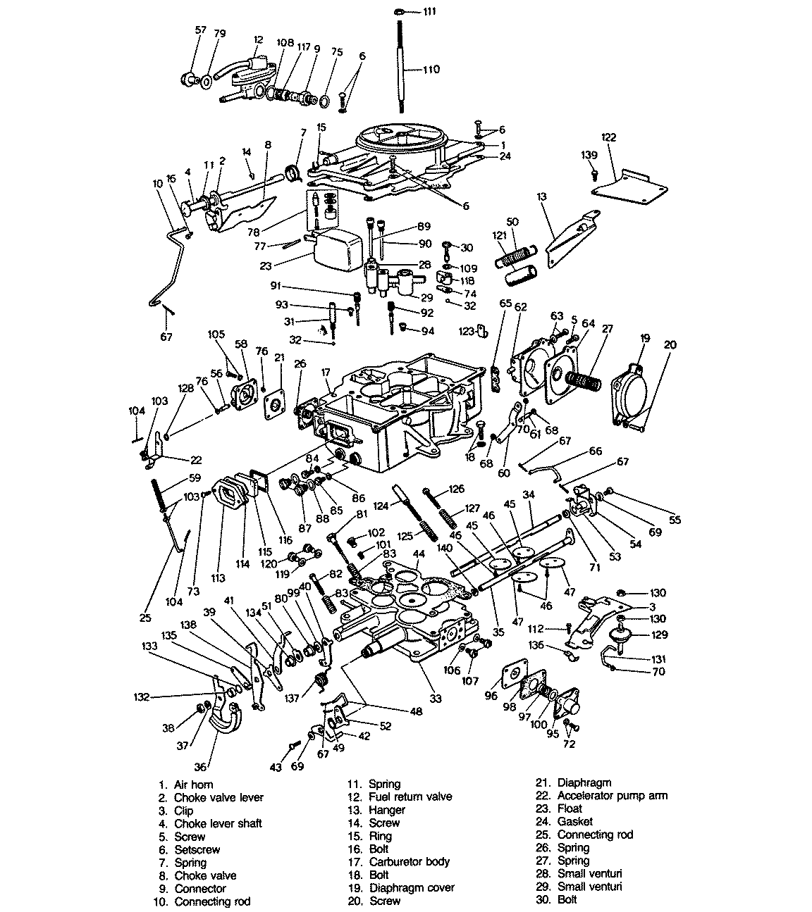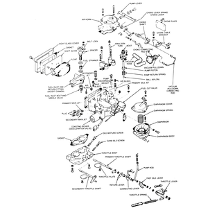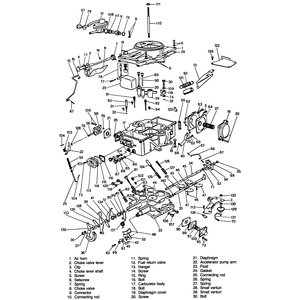 | Fig. 1: Exploded view of the carburetor used on the 1,586cc engine |