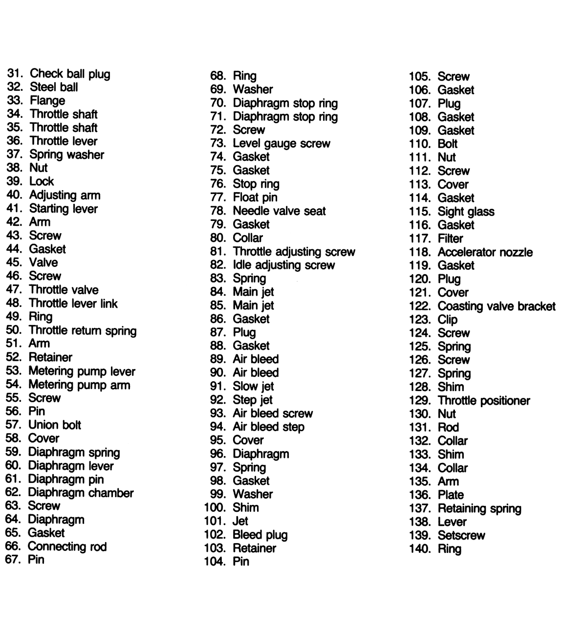 | Fig. 6: Key list for the carburetor used on the rotary engine (continued) |