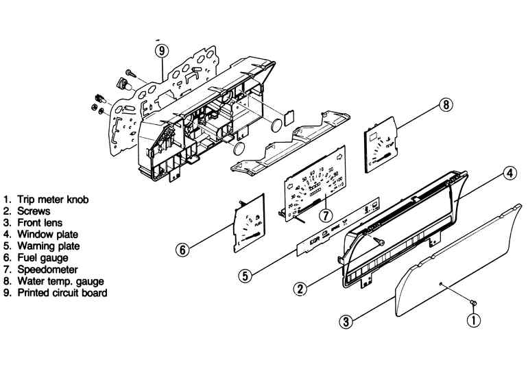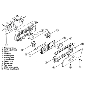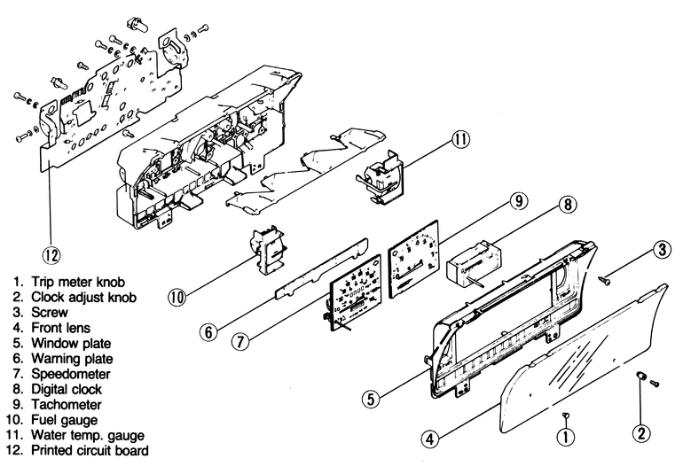 Remove the trip meter knob, and, on clusters w/tachometer, the clock adjust