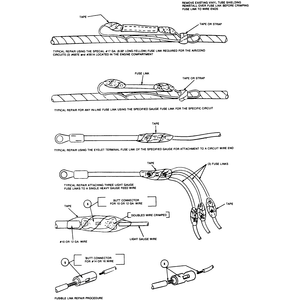 Wires which are open, exposed or otherwise damaged are repaired by simple splicing. Where possible, if the wiring harness is accessible and the damaged place in the wire can be located, it is best to open the harness and check for all possible damage. In an inaccessible harness, the wire must be bypassed with a new insert, usually taped to the outside of the old harness.