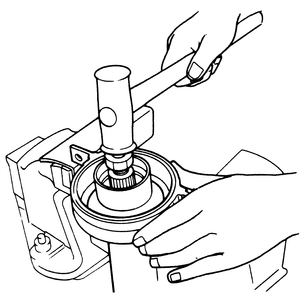 | Fig. 1: Place an old nut on the end of the driveshaft