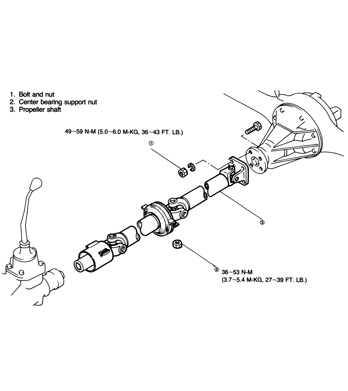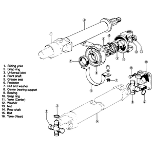 | Fig. 5: 1986 long bed driveshaft components |