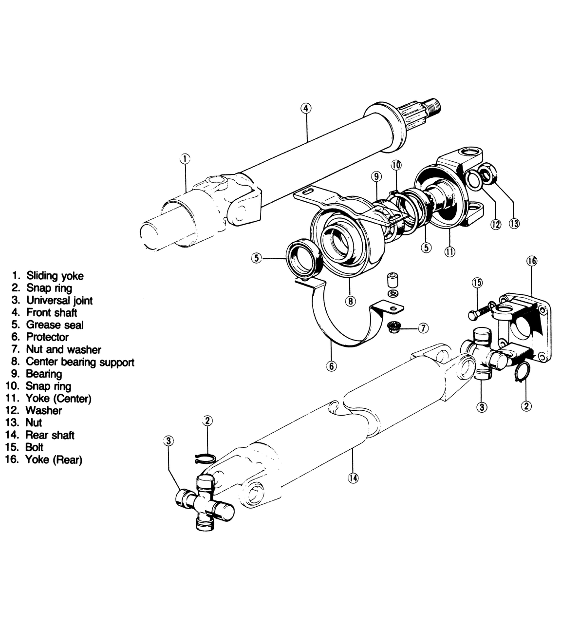 | Fig. 1: 1972–76 driveshaft components |
