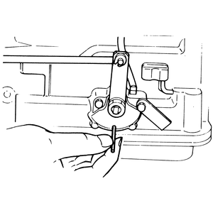 - Remove the transmission shift rod retaining nut and disconnect the rod