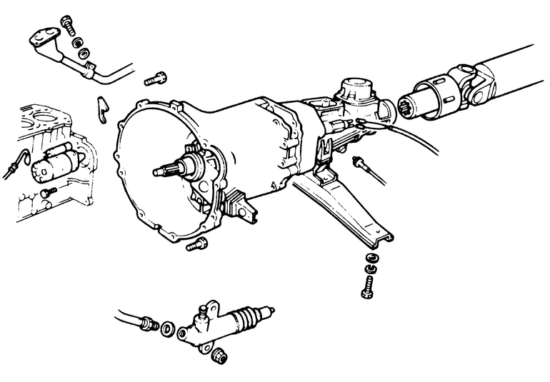 transmission-to-engine bolts to 60–65 ft. lbs.