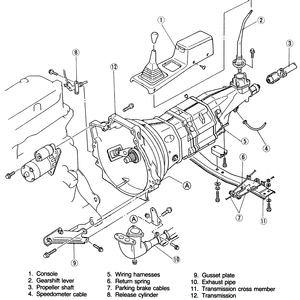 Install the shift lever. Torque the gearshift lever bolts to 6–8 ft.
