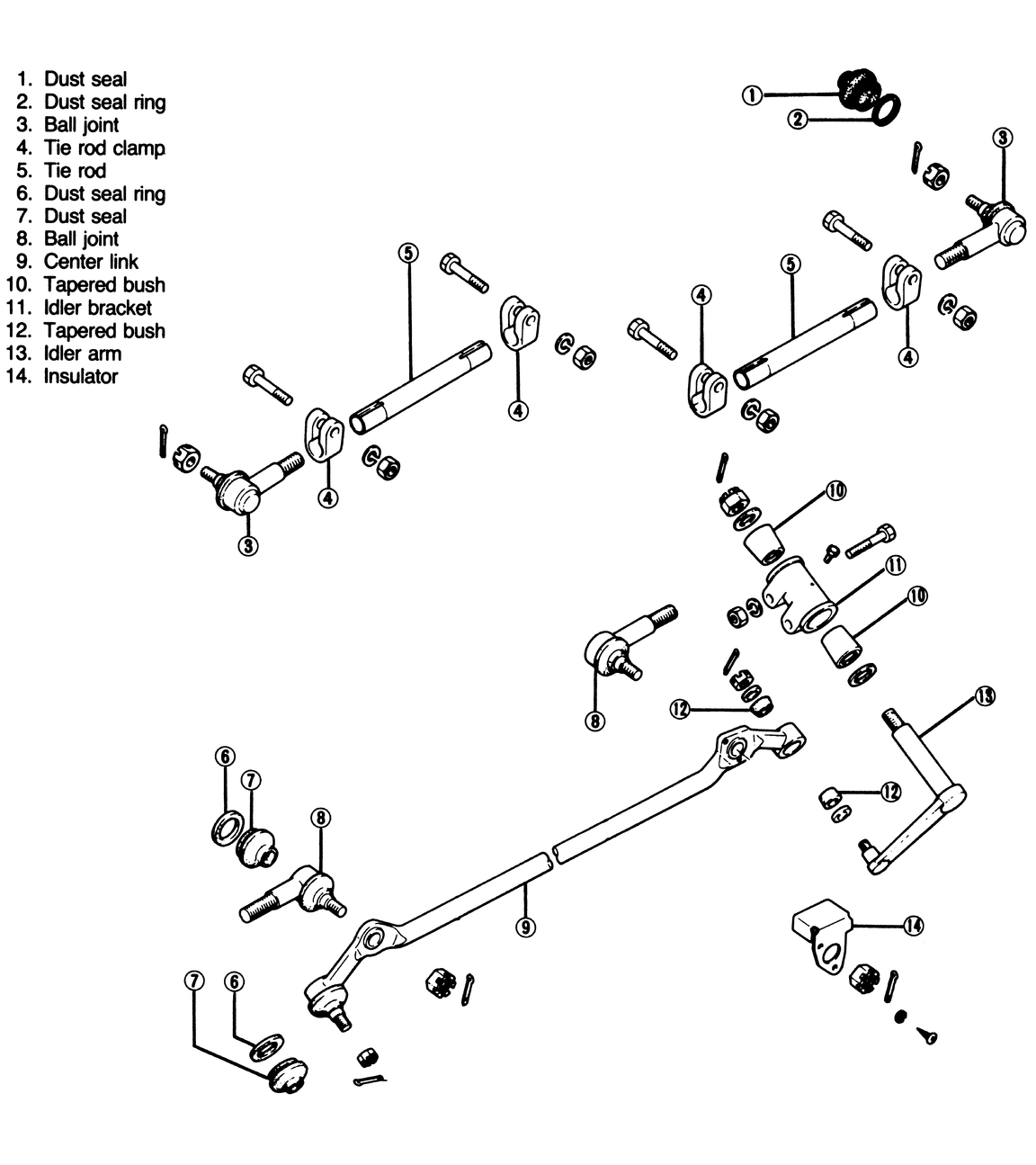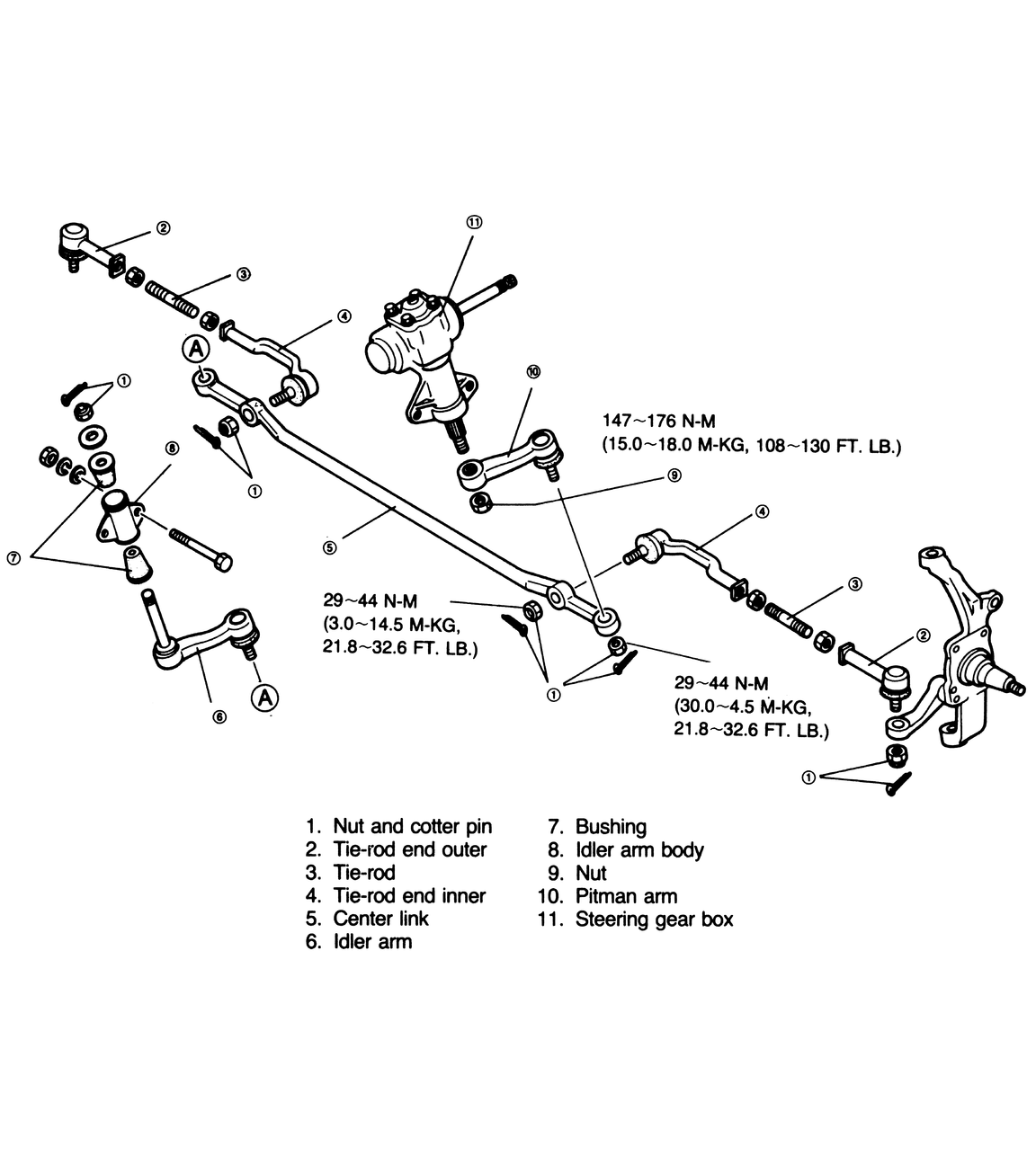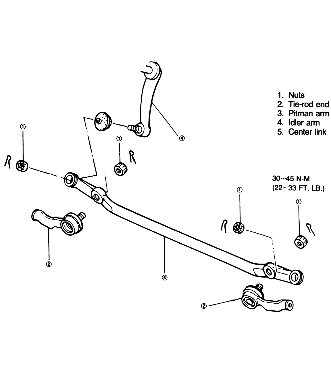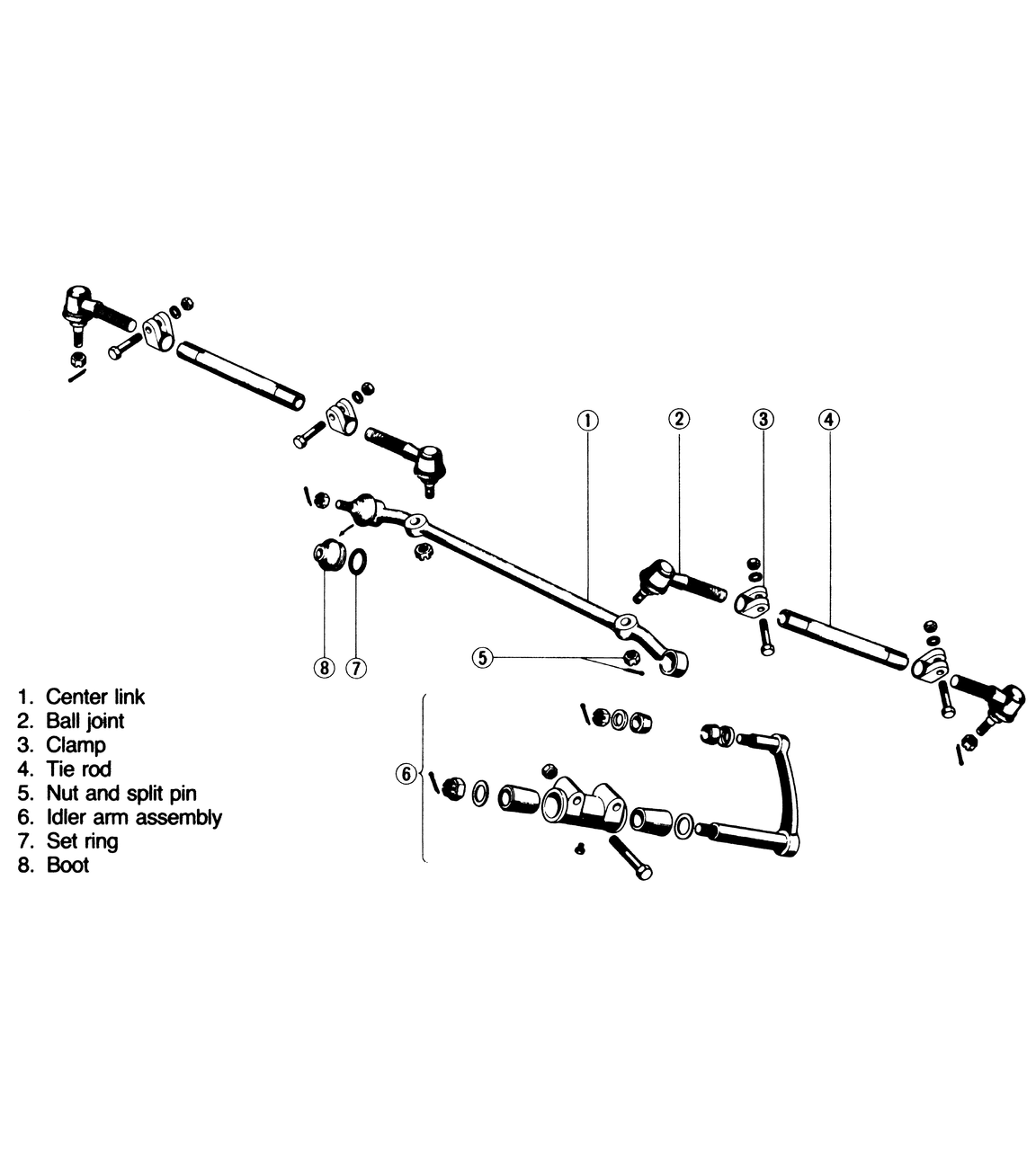 | Fig. 8: Exploded view of the 1982–84 center link and related components |