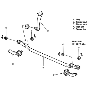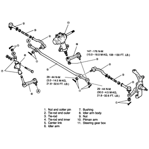| Fig. 5: Exploded view of the 1986 steering linkage |