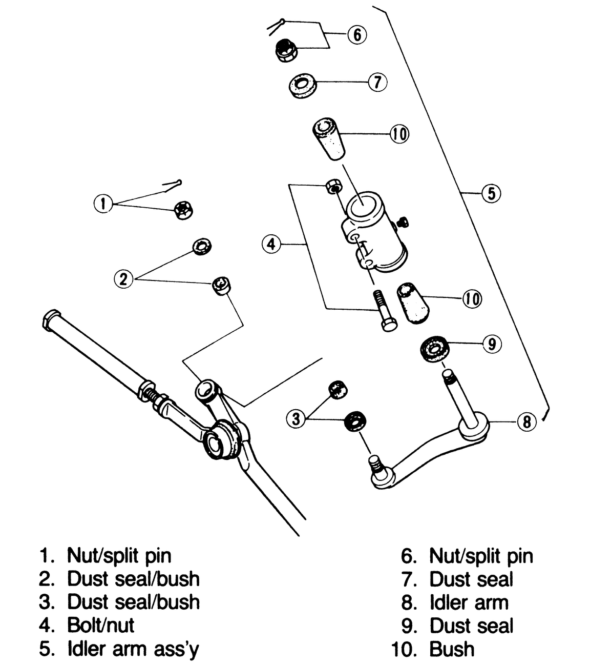 | Fig. 6: Exploded view of the 1978–81 idler arm components |