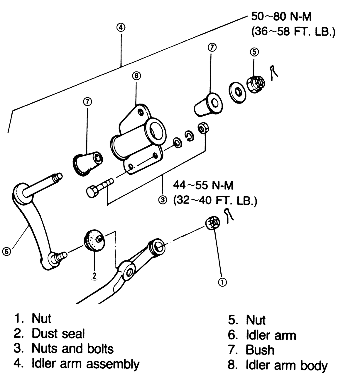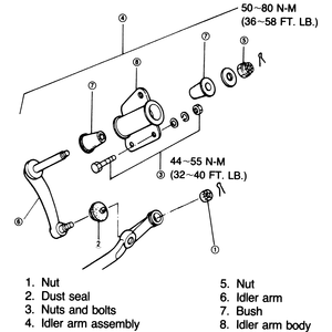 | Fig. 7: Exploded view of the 1982–84 idler arm components |